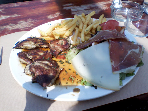 On a completely different note, I had lunch with a friend from Toulouse today, in Anglet (Chambre d’Amour). It was delicious! Here’s a pic of what we ate (fries, pork, and spanish salad):