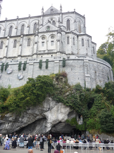 The most significant event in Lourdes history are the 18 apparitions of Mary to Bernadette Soubirous in 1858. Bernadette, a young shepherd girl, saw a ‘white lady’ in the grotto (cave) of Massabielle just outside of Lourdes. What is significant in these apparitions is that the lady referred to herself as ‘the immaculate conception’, a title attributed to Mary in Rome 4 years prior. She also told Bernadette about a spring in the cave that became a source of ‘Holy water’, with many reported healings. The white lady also requested that a church be built on the site. There are now 2. Lourdes is now one of the most visited pilgrim sites in the world, second only to the Vatican in Europe.